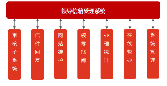 功能說明:如上圖(tu)所示(shi); 網(wang)站前臺有(you)書記信箱(xiang)、各部門領導信箱(xiang)等多(duo)個子站組成,用于接(jie)收(shou)和(he)發(fa)布網(wang)友提交的(de)信件和(he)辦(ban)理結果(guo),公(gong)開的(de)信息可直接(jie)查(cha)看,不公(gong)開的(de)信件通過查(cha)詢碼(ma)提取查(cha)看辦(ban)理結果(guo);