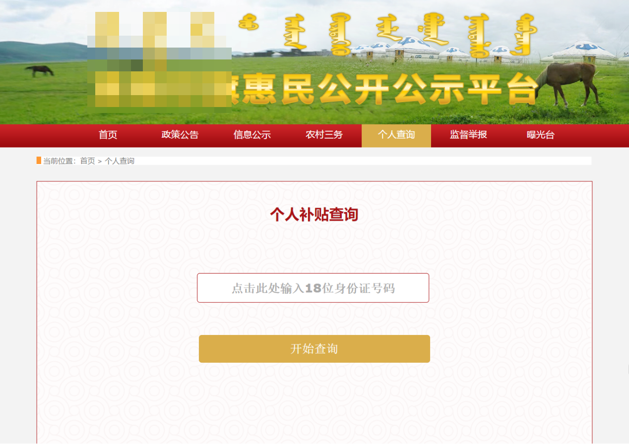 平(ping)臺包括了(le)“政策公(gong)告”、“信息公(gong)示”、“農村(cun)三務”、“個人(ren)查詢(xun)”、“監督舉報”、“曝光(guang)臺”六大版塊。涵蓋了(le)準格爾旗下(xia)轄各村(cun)所有涉農補(bu)貼(tie)以(yi)及(ji)村(cun)內大小事務的公(gong)開公(gong)示。廣大村(cun)民(min)通過平(ping)臺不僅可(ke)以(yi)查詢(xun)自己(ji)享(xiang)受補(bu)貼(tie)的情況(kuang),還可(ke)以(yi)足不出戶了(le)解本村(cun)的日常動態以(yi)及(ji)村(cun)集體資金的運行情況(kuang)。