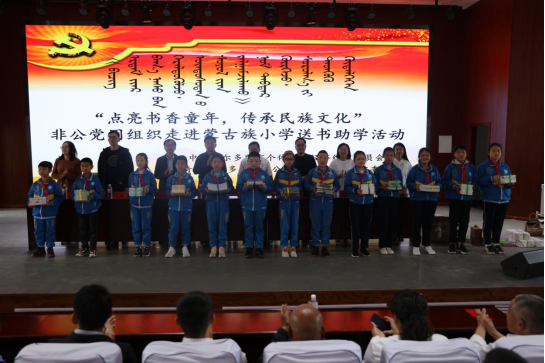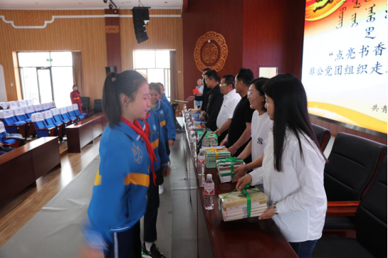 下午共青團員們共同前往霍(huo)洛鎮蒙古(gu)族(zu)小學,參觀學(xue)校、舉行捐書活動。通過(guo)座談交流(liu),對推行通用(yong)教(jiao)材、推廣蒙(meng)古語言等方(fang)面與學(xue)校老師進行探討交流(liu),促進民族(zu)團結,增進民族(zu)凝聚(ju)力(li)和向(xiang)心力(li)。