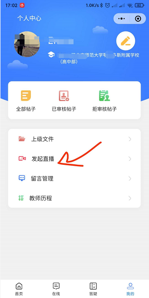 3. 直(zhi)播課堂:是(shi)由學校、旗區(qu)、市(shi)區(qu)任意一級管理(li)員后(hou)臺授權教師(shi)(shi)直(zhi)播權限,然后(hou)教師(shi)(shi)發起直(zhi)播,其它老師(shi)(shi)可通(tong)過直(zhi)播課堂觀看直(zhi)播,留言(yan)互(hu)動學習。