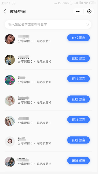 5. 教(jiao)(jiao)師空間(jian):是由學校審(shen)核(he)通過教(jiao)(jiao)師認證(zheng)之后,展(zhan)示在(zai)教(jiao)(jiao)師空間(jian)列表里,各位老師可以在(zai)次發起留(liu)言,進行咨詢互(hu)動學習。