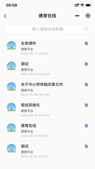 德育平臺小程序包括:資源共享、貼吧交流、直播課(ke)堂、專(zhuan)家答疑(yi)、教師空間、德育在線、上級文(wen)件、教師(shi)歷程八大(da)模塊。