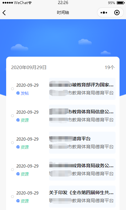 8. 教師歷(li)程(cheng):是記(ji)錄教師每一個時間段發布的資源(yuan)、帖子、直播信息,以時間軸展示教師歷(li)程(cheng)。