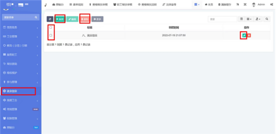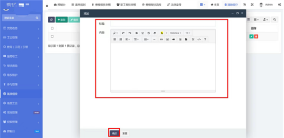 在就業(ye)創業(ye)中查看已錄入的信(xin)息(xi)(xi)。點(dian)擊(ji)(ji)添(tian)加按(an)(an)鈕,輸入標(biao)題和內(nei)容。內(nei)容編(bian)(bian)輯器支持文字(zi)排版、上(shang)(shang)傳圖片、插入視(shi)頻鏈(lian)接、插入表格、給文字(zi)加超鏈(lian)接等功能。點(dian)擊(ji)(ji)確定按(an)(an)鈕保存內(nei)容,發布(bu)到前(qian)端。點(dian)擊(ji)(ji)編(bian)(bian)輯按(an)(an)鈕,編(bian)(bian)輯之(zhi)前(qian)發布(bu)的內(nei)容后點(dian)擊(ji)(ji)確定按(an)(an)鈕保存內(nei)容,發布(bu)到前(qian)端。支持批(pi)量(liang)刪除,勾選想要刪除的信(xin)息(xi)(xi),點(dian)擊(ji)(ji)上(shang)(shang)方按(an)(an)鈕中的刪除按(an)(an)鈕。