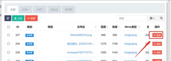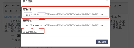 點(dian)擊選(xuan)擇文件(jian)按(an)鈕(niu)(niu)(niu),在彈(dan)出頁面中可以(yi)選(xuan)擇之前系統里上(shang)傳過的(de)(de)附(fu)件(jian),也可以(yi)點(dian)擊上(shang)傳按(an)鈕(niu)(niu)(niu),上(shang)傳新的(de)(de)附(fu)件(jian)。選(xuan)擇好后如第三(san)張(zhang)圖(tu),點(dian)擊編(bian)輯紅框中的(de)(de)按(an)鈕(niu)(niu)(niu),彈(dan)出圖(tu)4,編(bian)輯顯示(shi)文本,改為附(fu)件(jian)名(ming)稱(cheng)。前端點(dian)擊附(fu)件(jian)名(ming)稱(cheng)打(da)開(kai)鏈(lian)接。